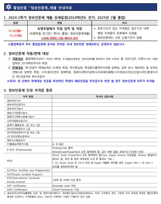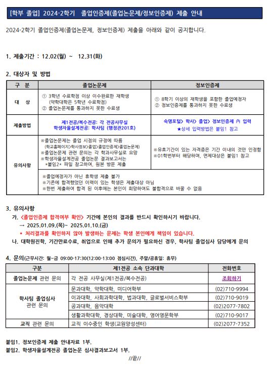 [졸업] 2024-2학기 학부 졸업인증제(논문/정보 능력 인증) 제출 시행